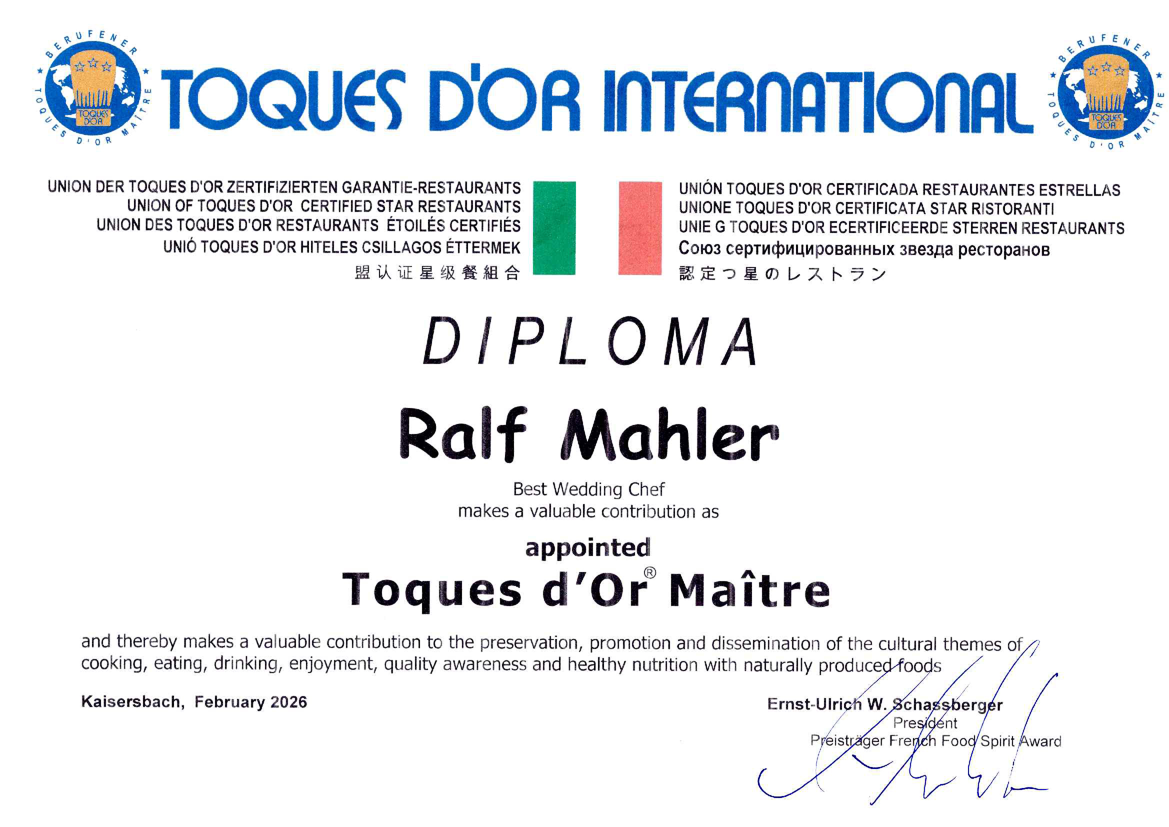 Koch: berufener Toques d'Or Maitre Ralf Mahler - since 2007